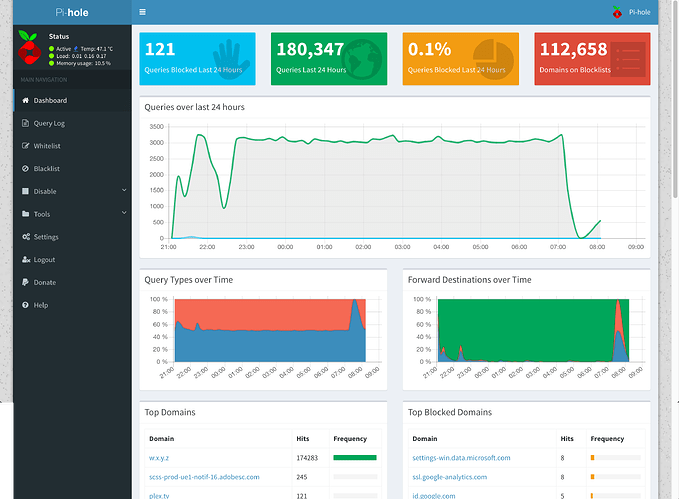 As Pi-hole's userbase has grown, so have the posts about people discovering interesting, perplexing, and nefarious things happening on their network. While Pi-hole doesn't provide deep insight into the traffic in your network, it's great for a high-level overview of the sites/domains being visited on your network.