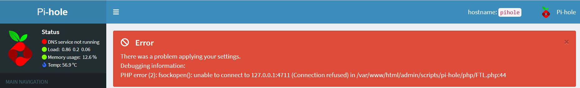 One in a while PiHole drops off-line as can be seen in the clip below. This is what I saw when I started work this morning. This happens every couple of weeks. Debilitating as we rely on it. I "restart system" command from the PiHole menu did not help but a reboot command issued via Remote Desktop did -- for now.