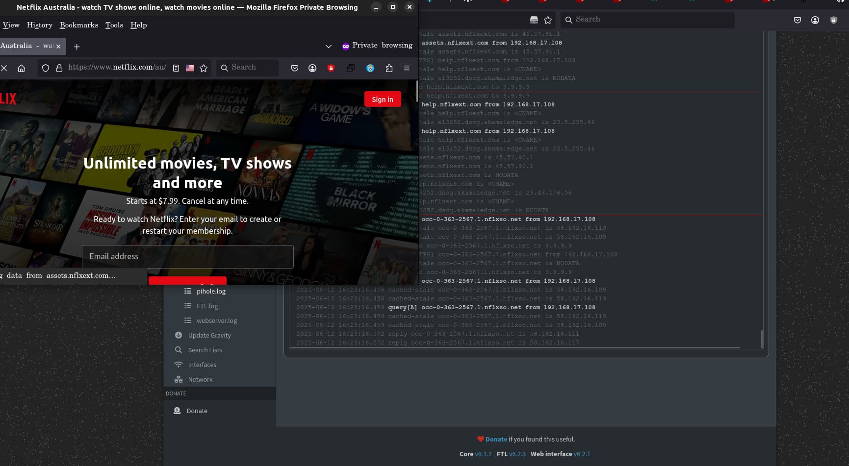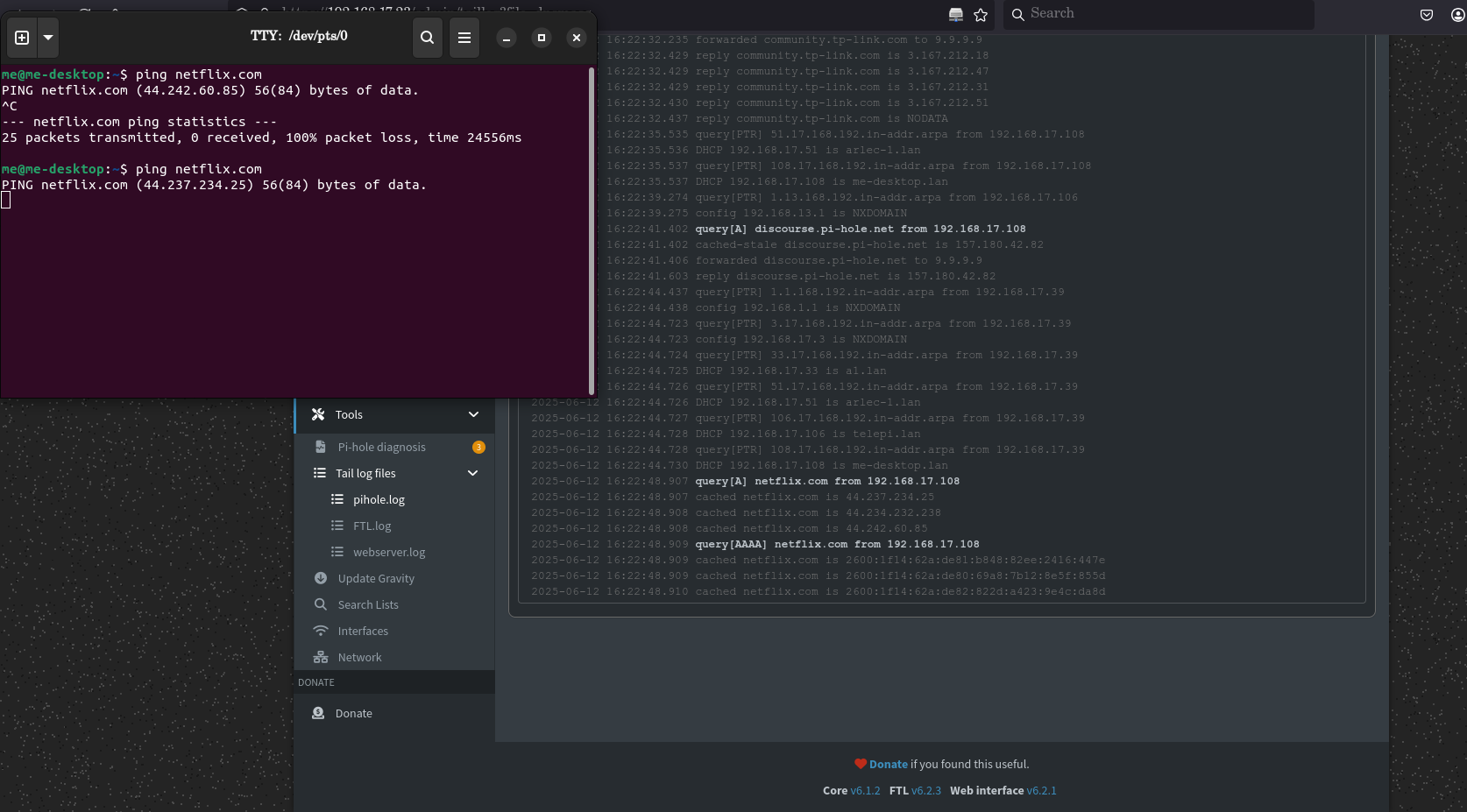 PiHole.... CORE 6.1.2 FTL 6.2.3 Web interface 6.2.1 from the bottom of the screen