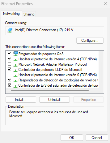 Description . . . . . . . . . . . : Intel(R) Ethernet Connection (17) I219-V