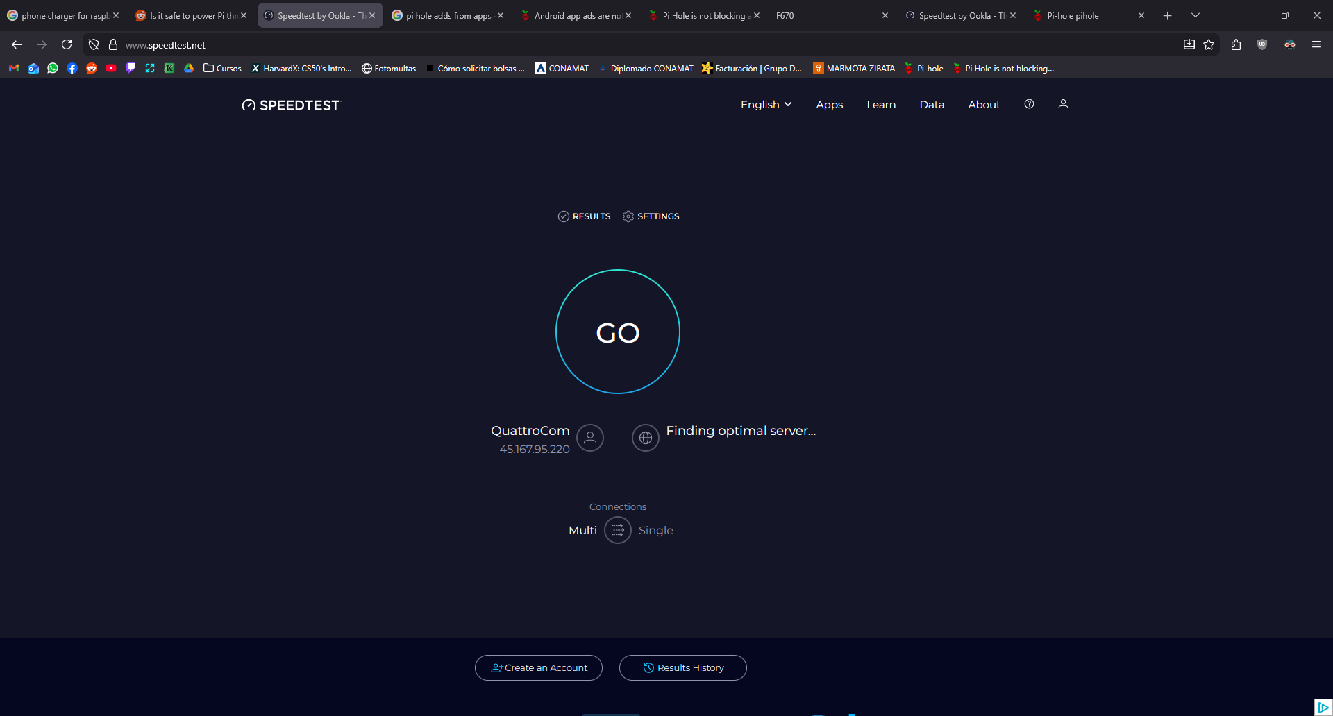 PiHole should block ads from sites like https://www.speedtest.net/