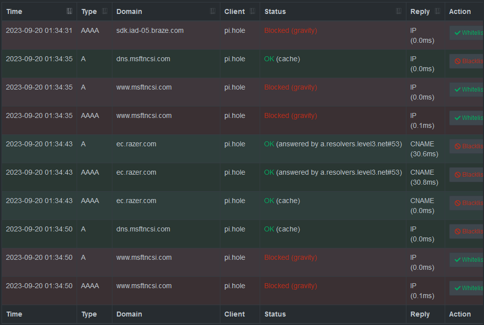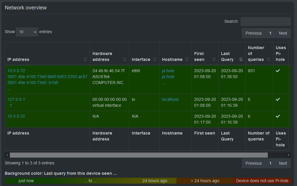 very few local(?) domains only are being shown, setting dns to pi-hole on pc and phone yield no results image: https://i.imgur.com/cIZgLQO.png it also thinks there are 13 clients when there def arent