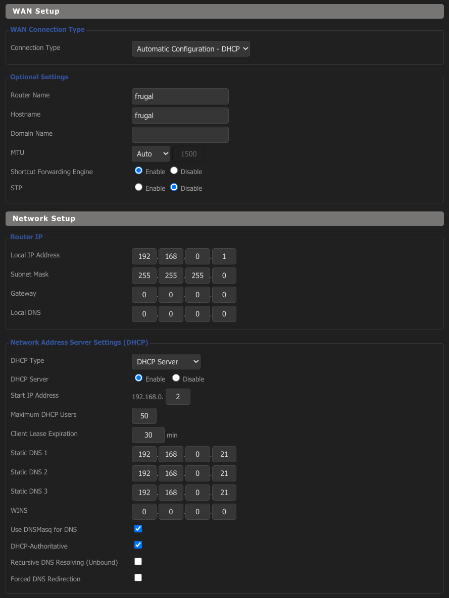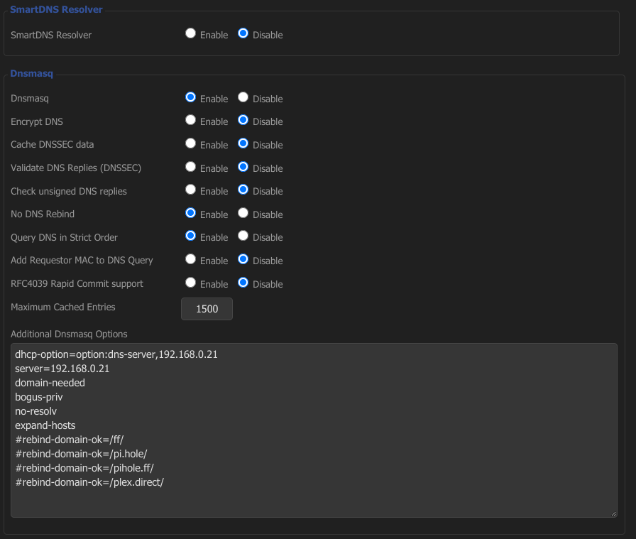 Additional Dnsmasq Options: (I could use some help with these if they look wrong)
