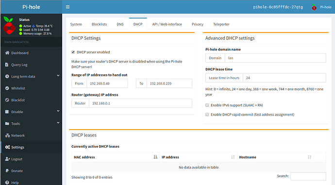 Then I disabled my router DHCP server and enabled Pi-hole like this:
