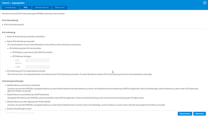 whats the difference between Native IPv4-Connection and Native IPv6-Connection in the IPv6-Connection fieldset?