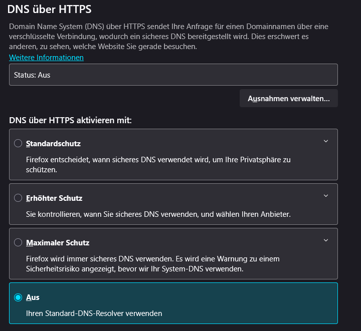 So jetzt mal kurz zu den DNS Settings in Browsern: