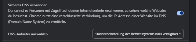 - Chrome nutzt dieses "Secure DNS" ja schon viel länger und war bei uns auch auf 1.1.1.1 gesetzt