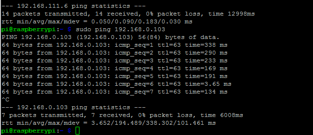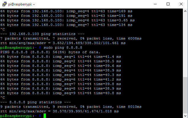 pi@raspberrypi:~ $ ping 8.8.8.8