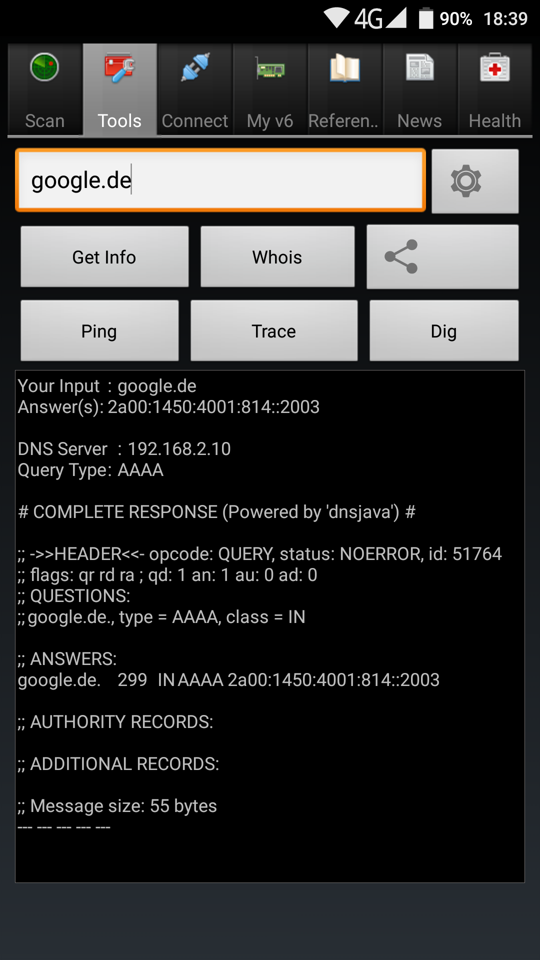 Afterwards, chose a valid domain and click on Dig. If everything works out you should see something like the following (note the QUERY status: NOERROR and that there is a result under ;; ANSWERS:).