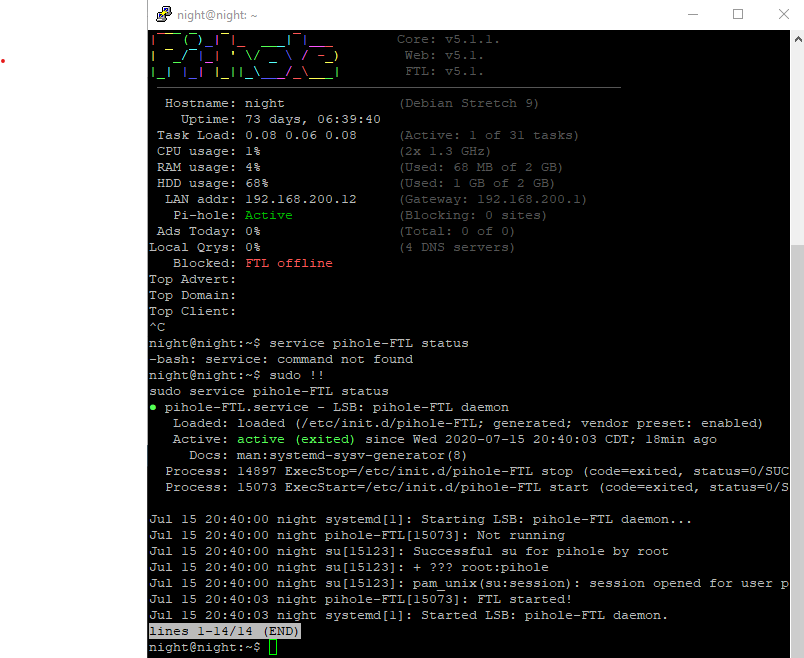 Just upgraded to 5.1.1 and pihole status shows everything is running. Doing a tail on the log shows queries being processed yet the pihole chronometer shows FTL offline. BUG??