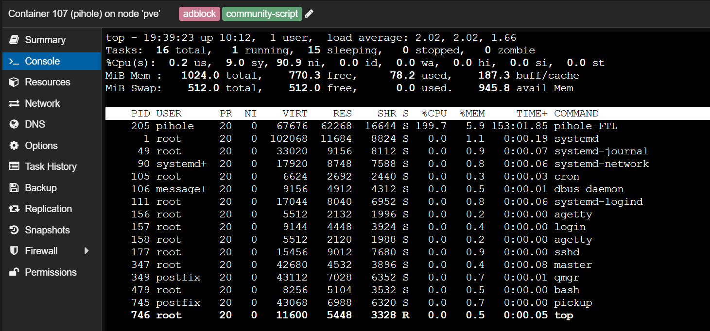 Expecting Pihole to not use 100% of CPU every 10-12 hours