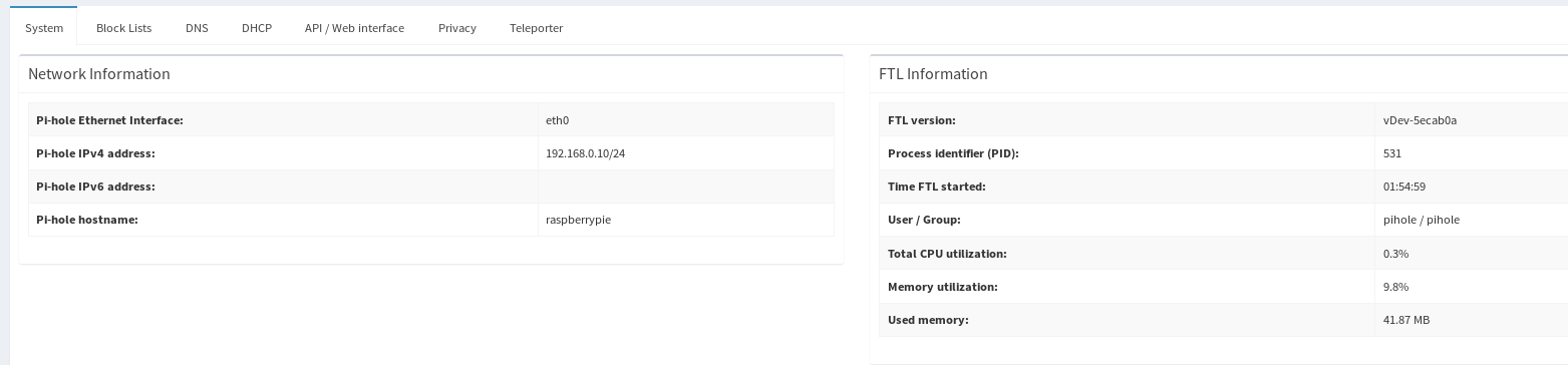 OS install is completely new with PiHole. Other than PiHole, all I’ve done is copy my sshd_config and install Zsh shell.
