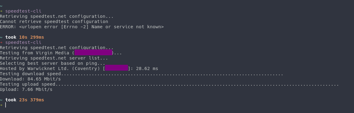 Raspberry Pi and my desktop connected via Ethernet. Raspberry’s Pi’s network speed caps at about 45 Mbps (This is apparently normal) and desktop gets a stable 90 Mbps down and 8 Mbps upload.