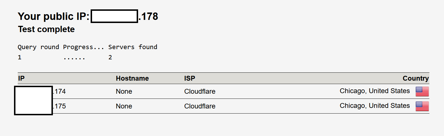 When I test my DNS connection via webpages like DNS leak test, or IP/DNS detect, for it to be pointing to my pihole, not cloudflare, right?