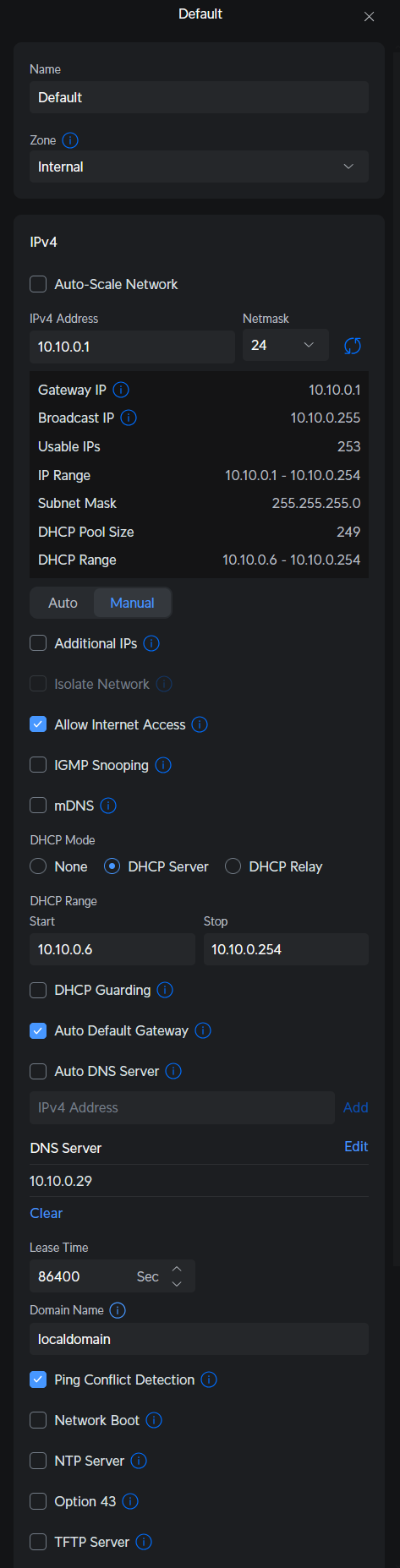 After install and setting static IP, I went into my Unifi dashboard > Networks > Default > turned off auto DNS and then set my Pihole’s IP as the DNS server.