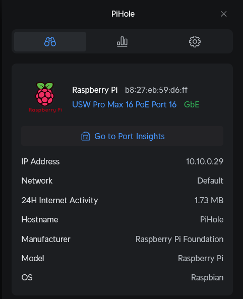 Pi Hole is on default network’s vlan, same as the windows PC, both via ethernet to the switch.