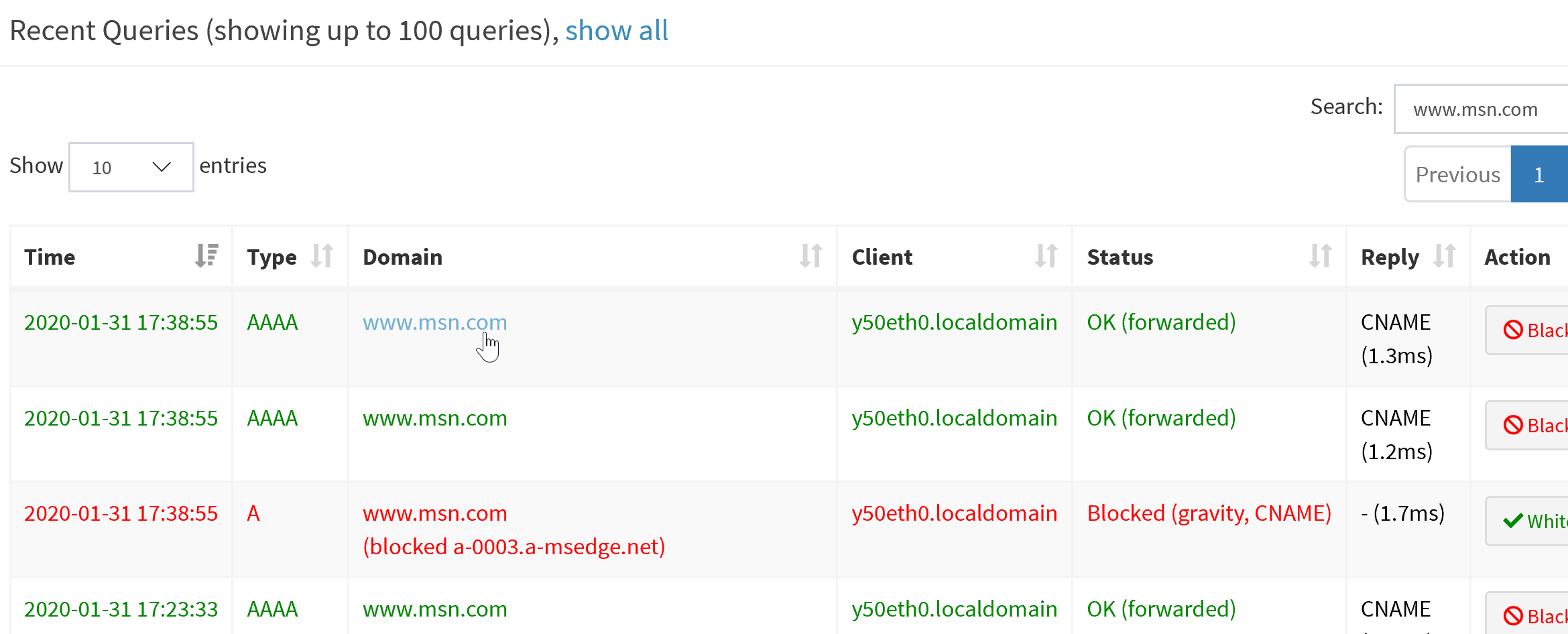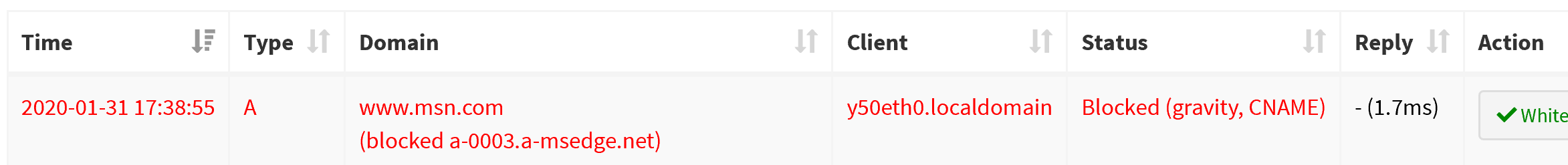 [2020-01-31 12:24:53.968 28875] **** new UDP query[AAAA] "ctldl.windowsupdate.com" from 192.168.2.228 (ID 28, FTL 27, src/dnsmasq/forward.c:1571)