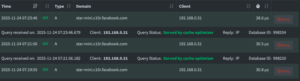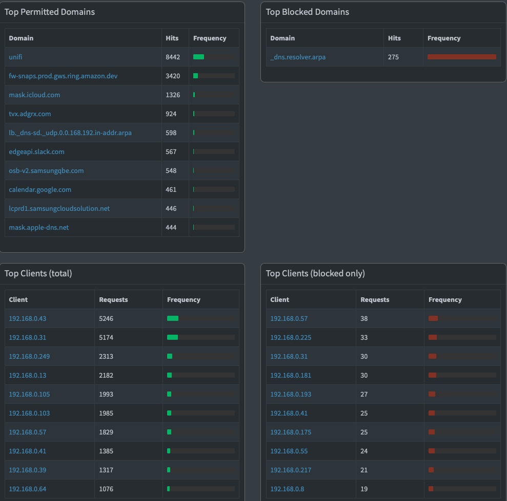 For months and months, my Pi-hole dashboard showed a much larger set of blocked domains, including the usual “easy win” Smart TV trackers (Samsung, LG, Roku, etc.) along with Facebook, TikTok, and similar social telemetry domains. Everything worked great, and I could clearly see them being blocked in Query Log and Top Blocked Domains.