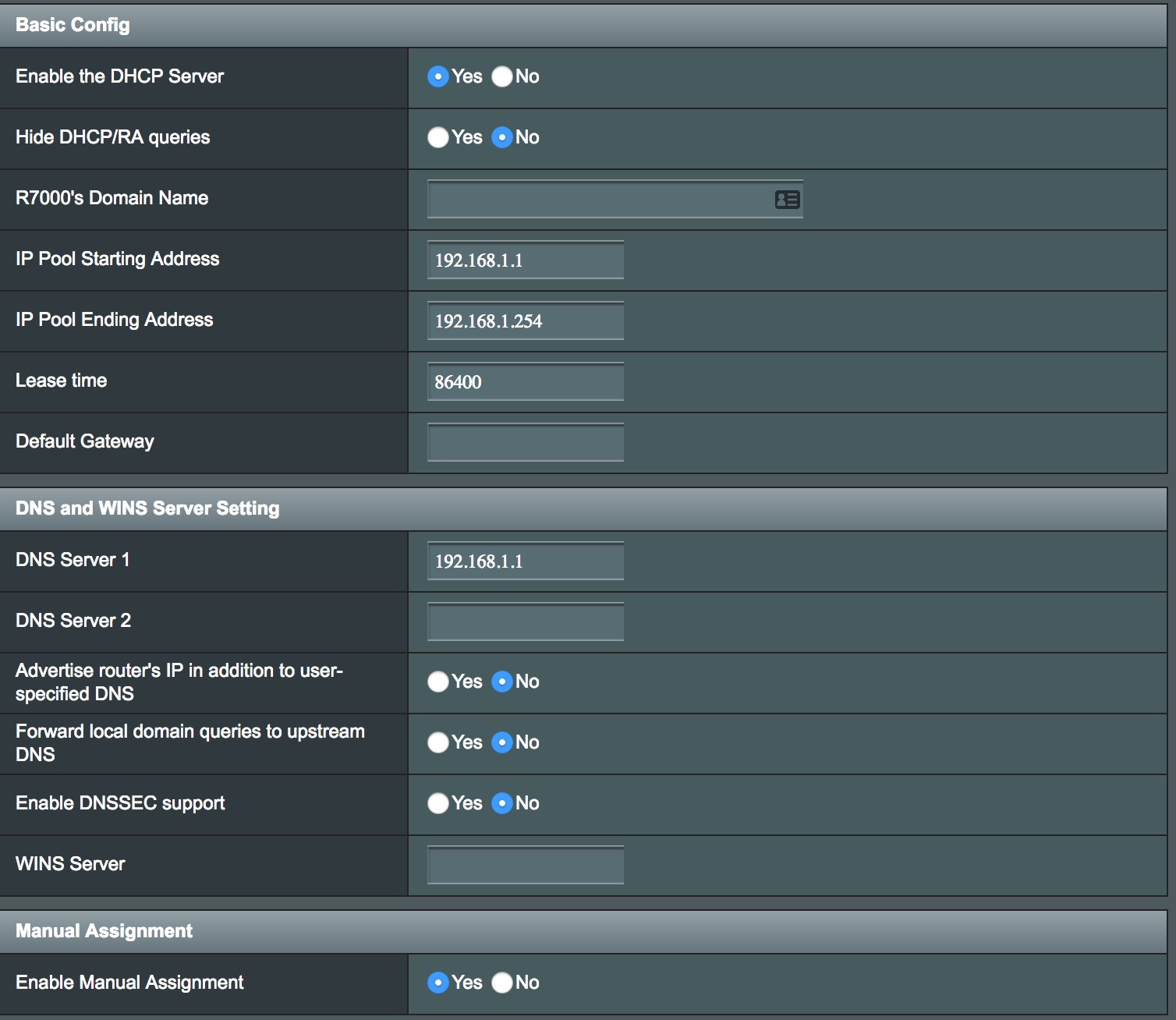 Did Enable the DHCP Server = No