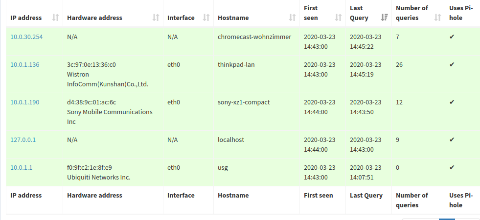 @yubiuser I believe (grain of salt) I first saw the duplicate yesterday when you OK'd the changes in this thread...I concurred then noticed the N/A host name and mentioned the duplicate. I did run the table flush just before that. That said, it also could have been coincidence I didn't see it prior...not sure. I know I had not ever seen a duplicate prior as I mentioned to earlier in this thread, because I was watching for them. The sequence was always the same, mock showed first, then the proper record with (I guess that is retrieved via ARP). Still seems like timing...flush network table, before ARP calls are made, table is empty, then one or more hosts make DNS calls in that brief period, they don't exist in the network table so pihole adds them as mock, THEN ARP sequence is initiated and devices get added. Maybe...? Cheers. ![]()