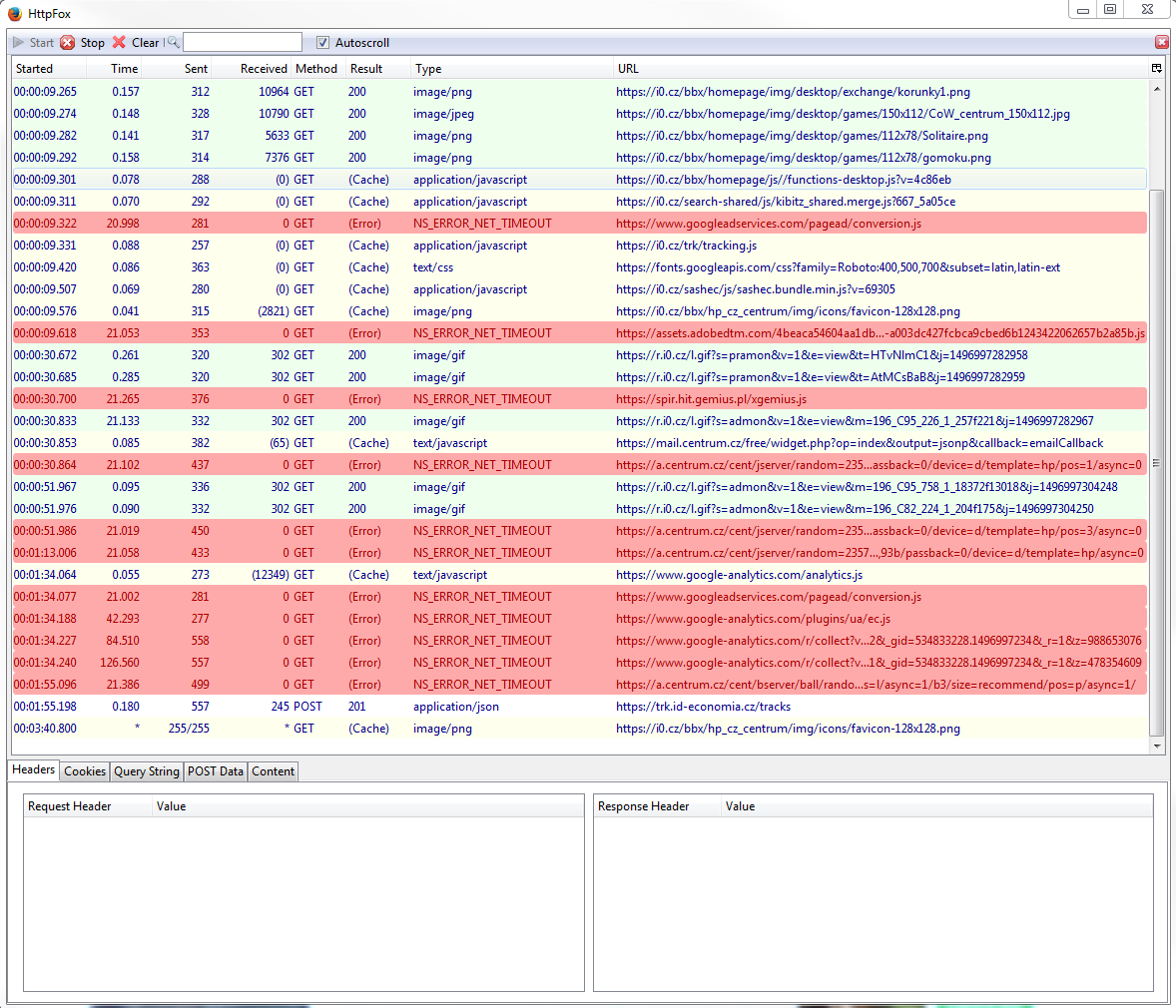 All long requests, ending at timeout, are on https.