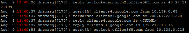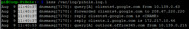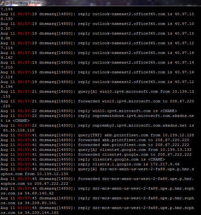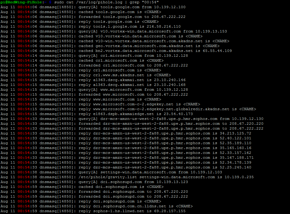 I ran sudo cat /var/log/pihole.log | grep "01:17:"