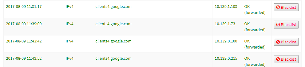 2017-08-11 01:17:27 IPv4 twitter.com 10.139.12.100 OK (forwarded) Blacklist