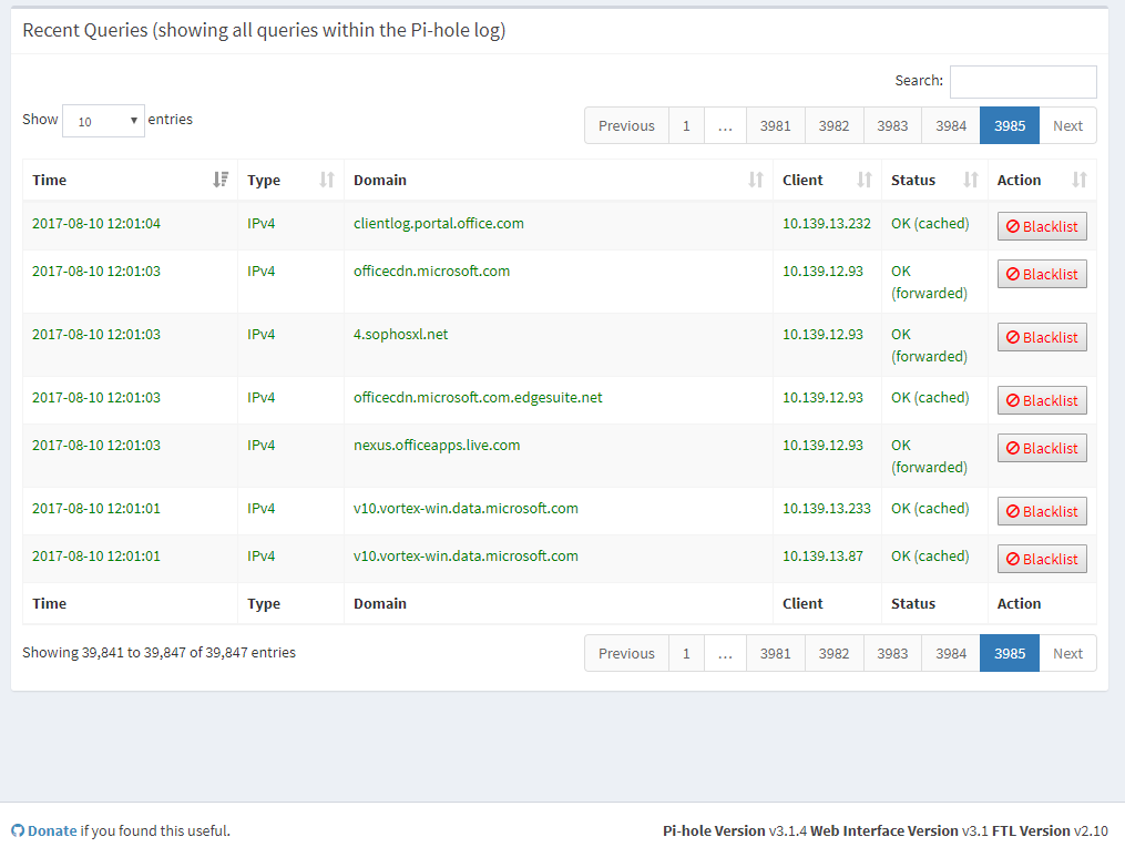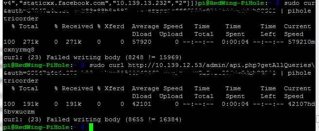 curl http://pi.hole/admin/api.php?getAllQueries\&auth=183c1b634da0078fcf5b0af84bdcbb3e817708c3f22b329be84165f4bad1ae58
