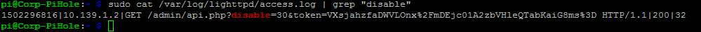 That was from the web interface because it gives the token parameter (a CSRF token only used when disabling via the web interface). So someone was on the web interface via the Pi.