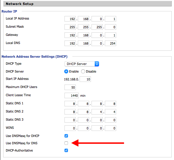 The only thing you have to do is uncheck Use DNSMasq for DNS.
