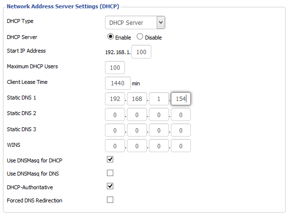 Gravity configured for: 192.168.1.154/24