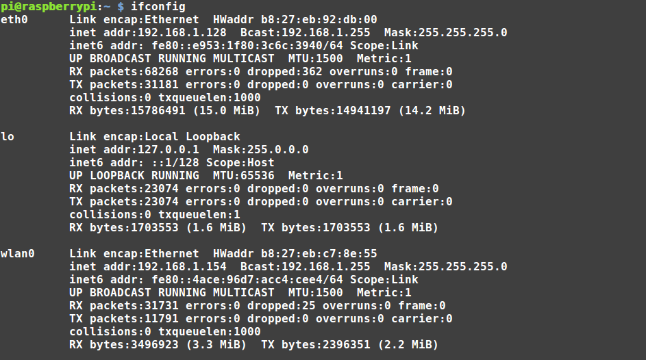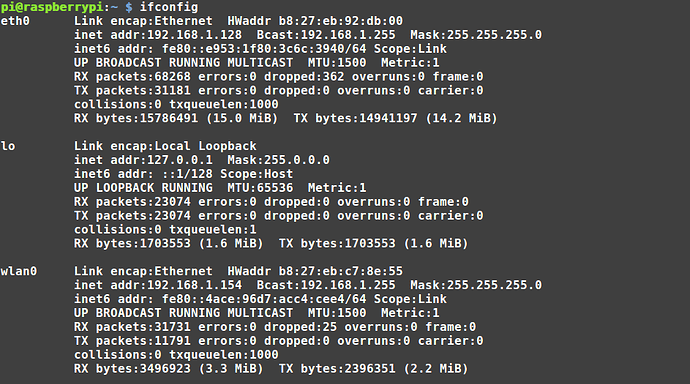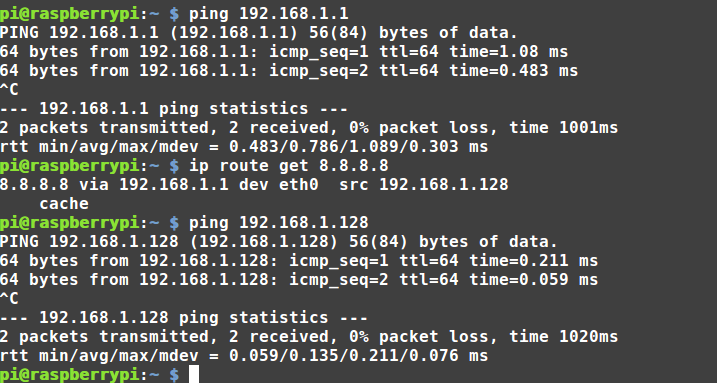 pi@raspberrypi:~ $ ping 8.8.8.8