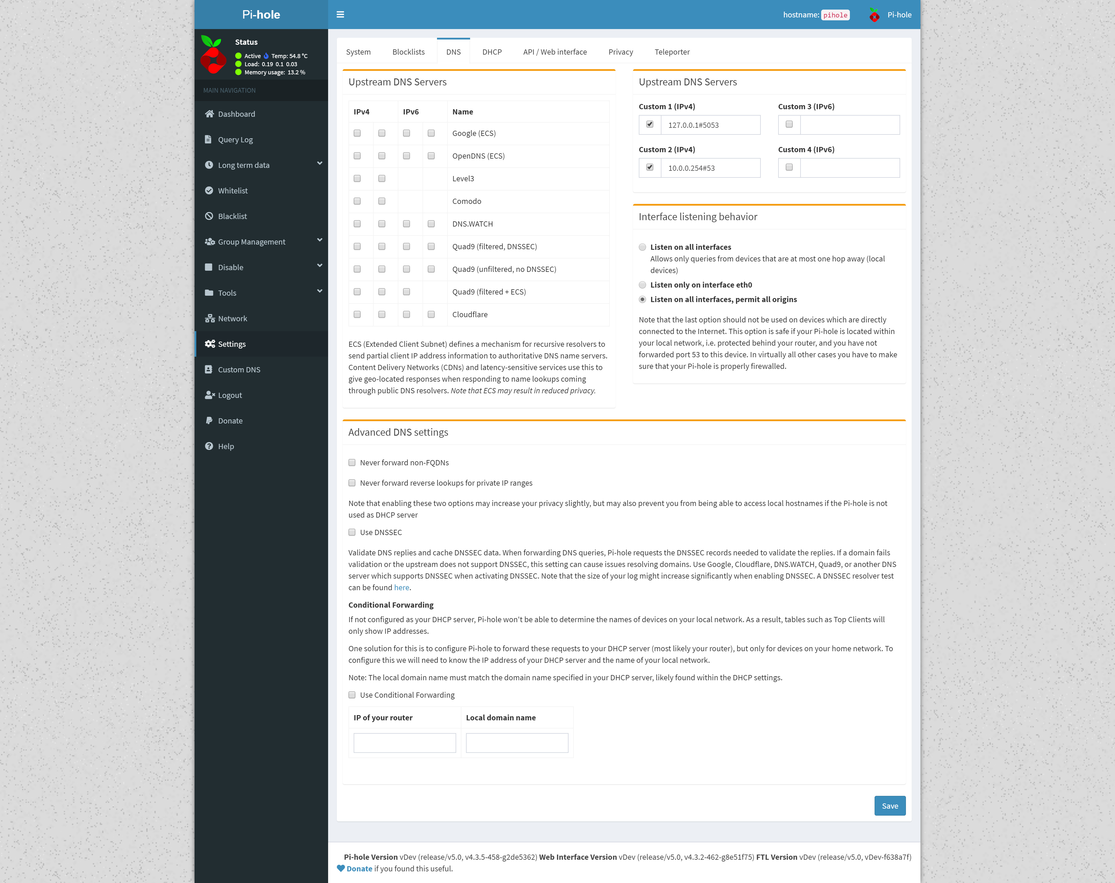 Pi-hole version is v4.3.5-450-g1b35eeb (Latest: v4.4)