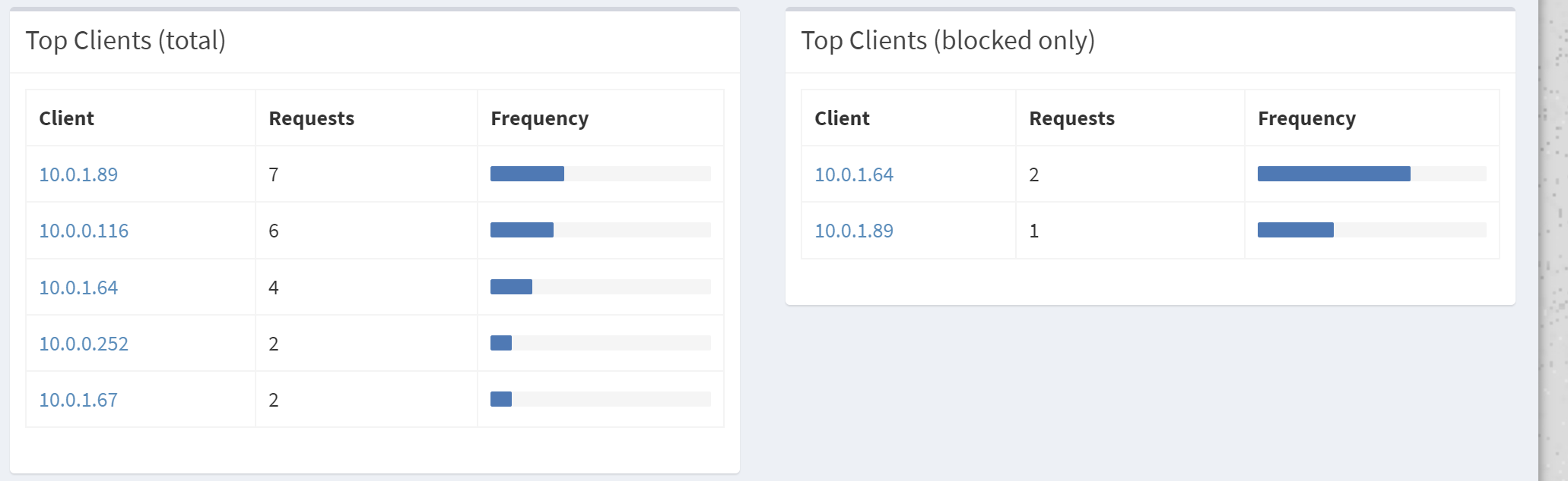 Even after waiting for 41 min (292 requests later for 10.0.1.89), no hostnames show up on the dashboard.