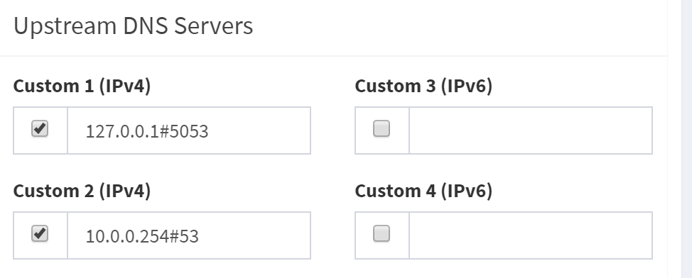 Just tried to remove it from “Custom 2 (IPv4)” and I can't access anything on my local network by hostname and no local clients are resolved on the dashboard so it seems to be mandatory that my router/DHCP is set in “Custom 2 (IPv4)”