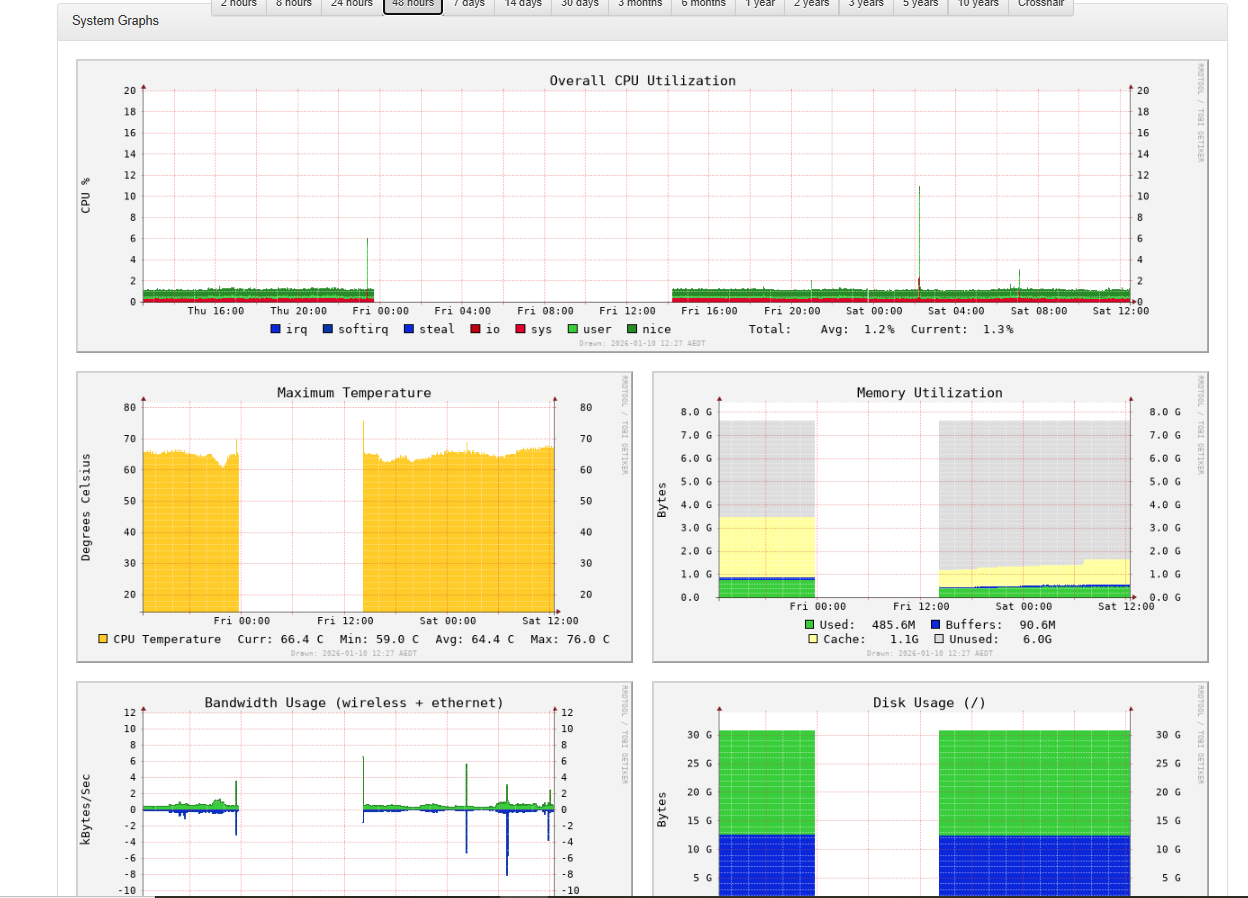 I think the unit just reboots - but, I loose the graph data since midnight, hence big gap in graph…
