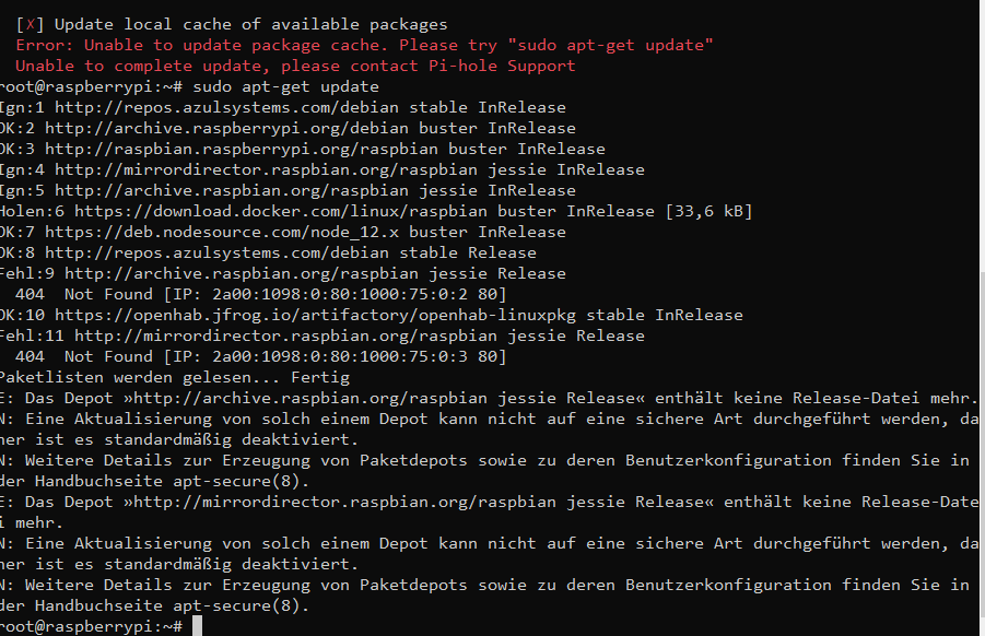 Hallo! Wollte soeben Pihole updaten, es schlägt aber fehl: