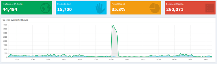 We have seen reports of users finding devices that try to continually query domains to verify Internet connectivity. For example, this user saw a large spike in queries in the middle of the night.