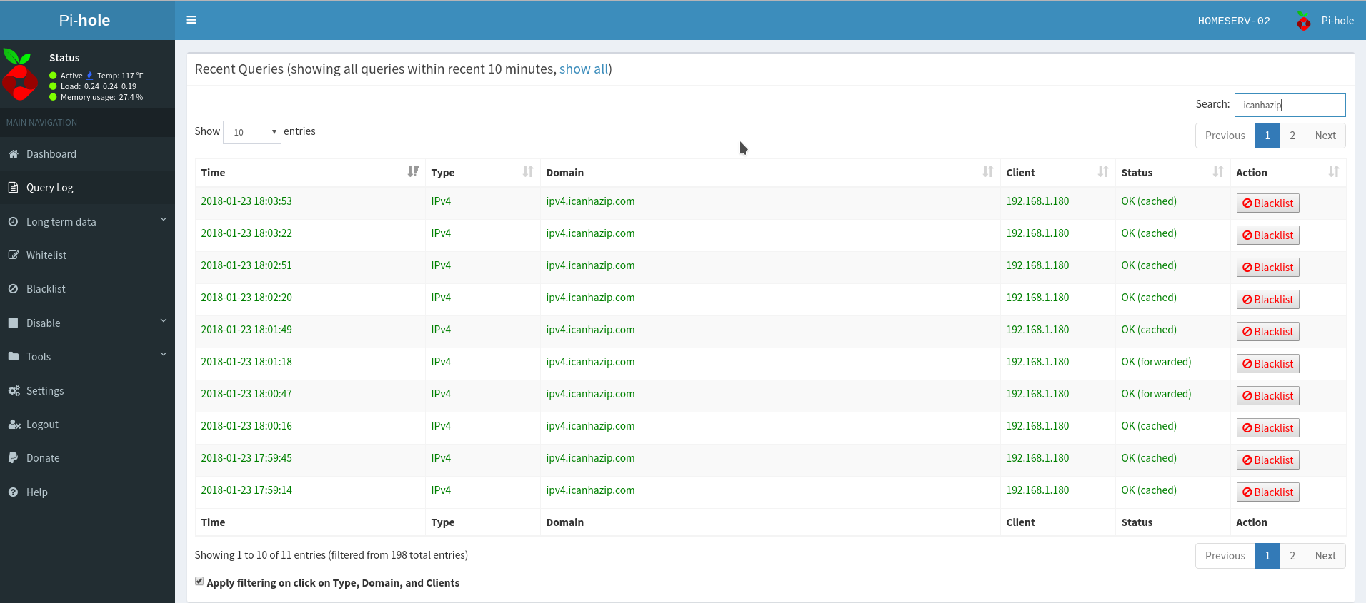 - Pi-hole queries itself and a non-existant domain