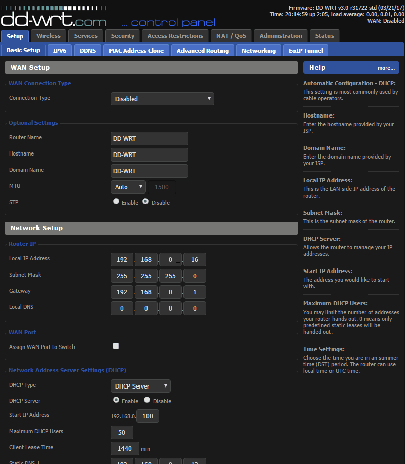 --192.168.0.16--(WAN) TP-Link TL-WR1043ND "DDWRT Firmware" (DHCP ON)
