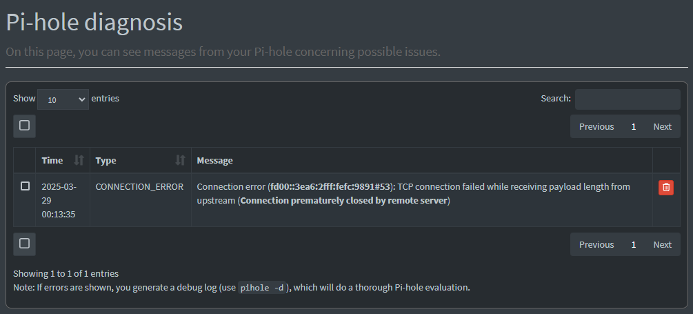 nachdem, dank des großartigen Supports hier im Forum, die größten Probleme wohl behoben sind, habe ich noch zwei Einträge in der "Pi-hole diagnosis" die immer wiederkehren.
