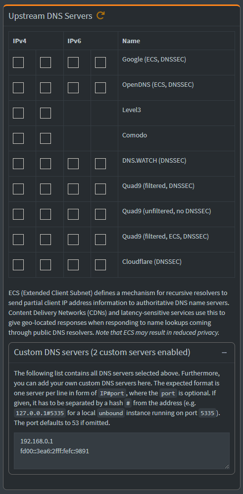 Dort solltest Du also die vom Internetanbieter zugewiesene DNS-Server verwenden, sofern Deine Fritzbox Pi-hole bereits als lokalen DNS-Server via DHCP verteilt.